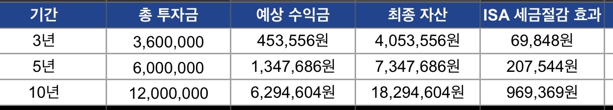 • ISA 계좌 활용 시 약 97만 원 세금 절감