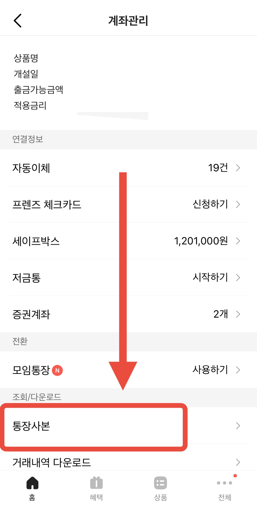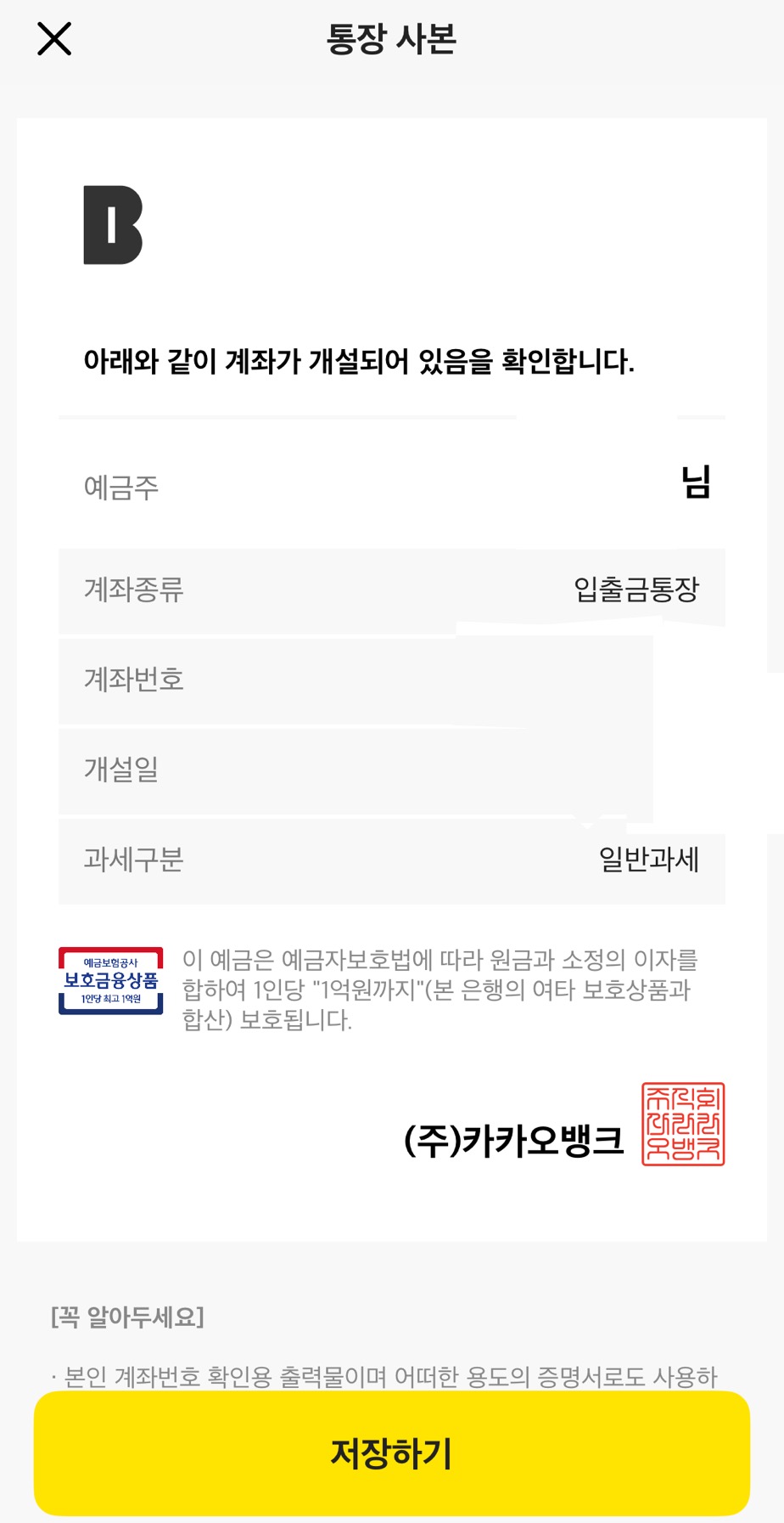 카카오뱅크 앱에서 통장사본 저장하는 방법