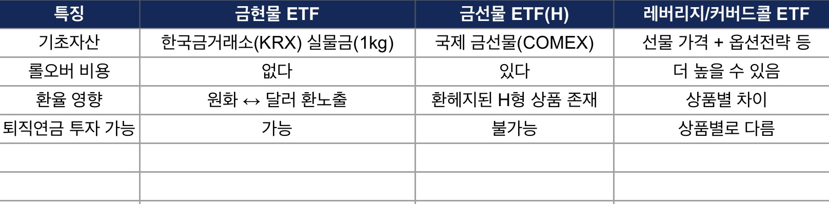• 금현물 ETF는 실물 금을 직접 보유