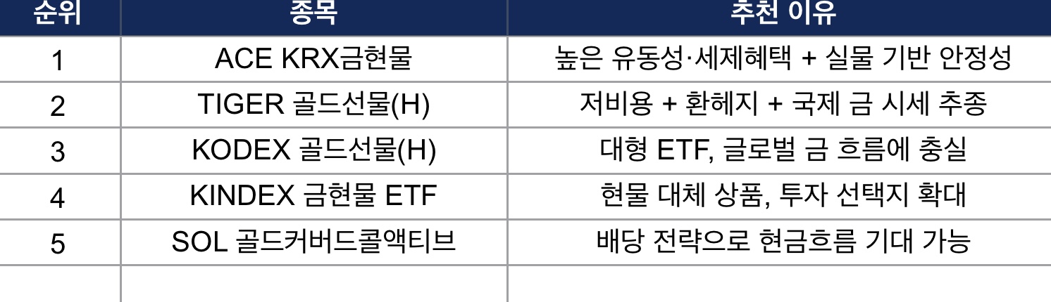 한국 금 ETF 종목별 추천 이유 요약